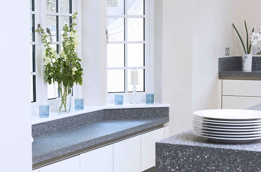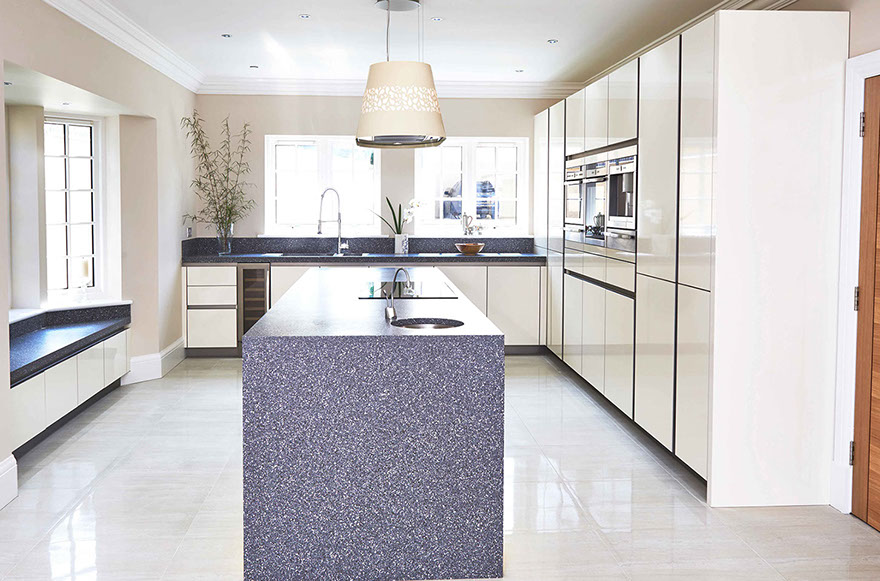 A dynamic space, fully utilizing its environment to give it a bright, open and airy feel. The crafted storage areas enhance the uncluttered, clean space - keeping appliances hidden and allowing light to bounce off the beautiful white surfaces.